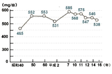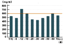 | 1日あたりの日本人のカルシウム摂取量 | 各国のカルシウム摂取量 | 日本人のカルシウム摂取量の年次推移 |
